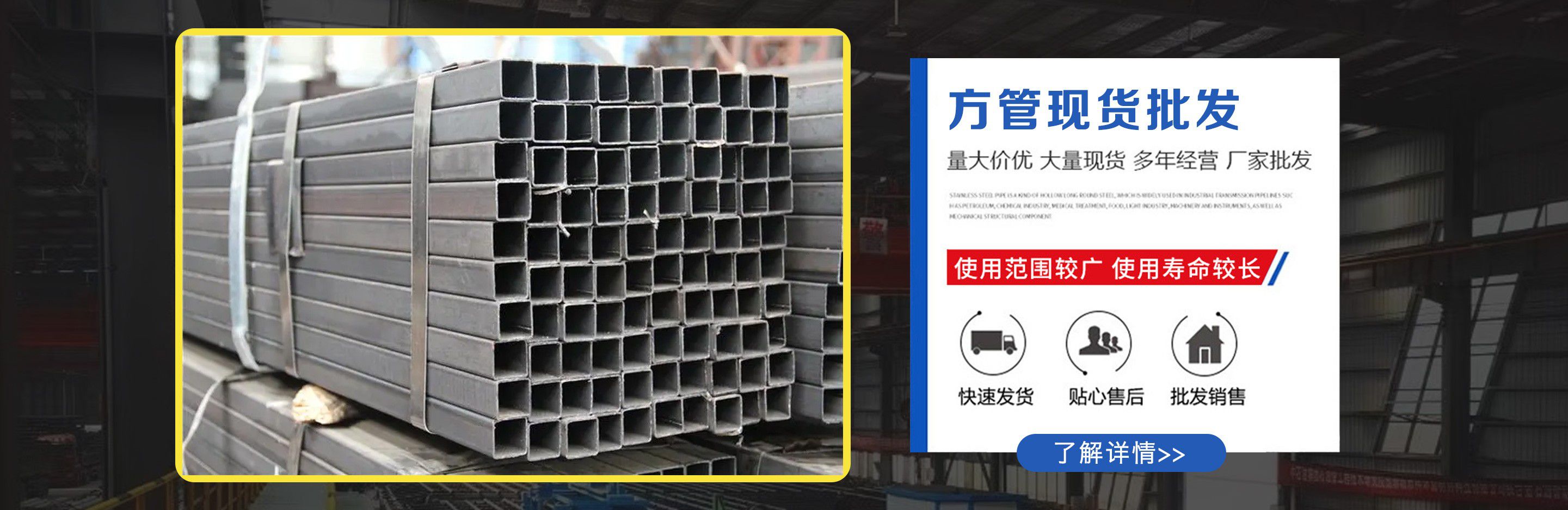 天津鍍鋅方管廠位于天津市靜海大邱莊工業(yè)區(qū),交通便利,地理位置優(yōu)越。我廠占地面積近9000平方米,注冊資金1000萬元,主要從事鍍鋅方管,鍍鋅方矩管,熱鍍鋅方管,鍍鋅方管廠家等產(chǎn)品的生產(chǎn)及銷售,現(xiàn)生產(chǎn)設(shè)備已擴(kuò)大到六條,年生產(chǎn)量十萬噸左右占地面積近兩萬平米。銷售網(wǎng)絡(luò)遍及全國,受到廣大用戶認(rèn)可。公司恪守以誠信為本,立業(yè)為眾的經(jīng)營理念,以可靠的質(zhì)量、合理的價格、優(yōu)質(zhì)的服務(wù)、卓絕的信譽(yù)、期待您的關(guān)注和支持。 公司庫存量大,材質(zhì)規(guī)格齊全,沒有規(guī)格及特殊規(guī)格材質(zhì)方管可及時定貨生產(chǎn),我公司經(jīng)營方式靈活,批零兼營、一支起售,并可為客戶辦理鐵路、公路運(yùn)輸,7*24小時為您服務(wù),歡迎新老客戶來電垂詢。 公司一直堅(jiān)持“以質(zhì)量求生存,以產(chǎn)品求發(fā)展,以信譽(yù)保合作,以服務(wù)贏客戶”的經(jīng)營方針,客戶遍及大江南北,獲得了良好的聲譽(yù)與回報(bào),在以后的發(fā)展歷程中,我們愿與廣大客戶攜手并進(jìn),共創(chuàng)輝煌。 熱忱歡迎新老客戶蒞臨指導(dǎo)、洽談業(yè)務(wù)!...